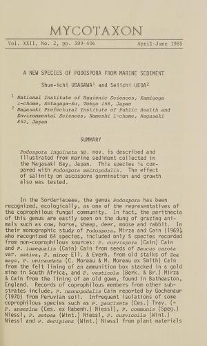 Published in Mycotaxon, in 1985, in volume 22, issue 2, pages 399-406