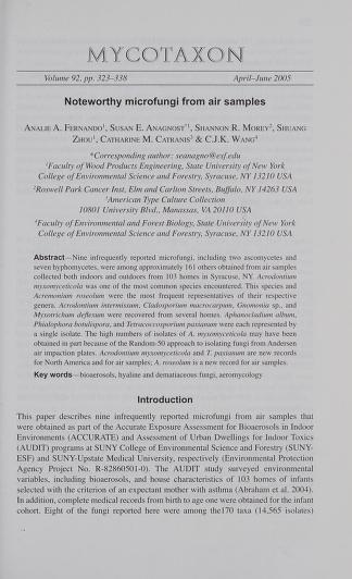 Published in Mycotaxon, in 2005, in volume 92, pages 323-338
