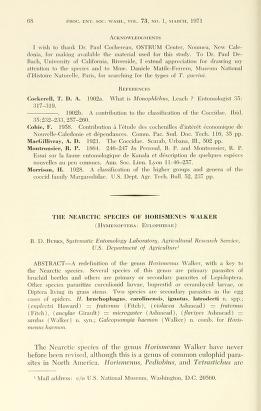 Published in Proceedings of the Entomological Society of Washington, in 1971, in volume 73, pages 68-83