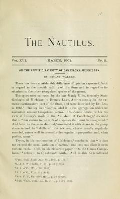 Published in Nautilis, in 1902, in volume 16, pages 85-88