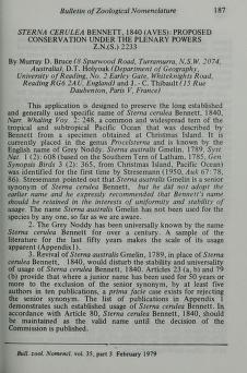 Published in Bulletin of Zoological Nomenclature, in 1979, in volume 35, pages 187-188