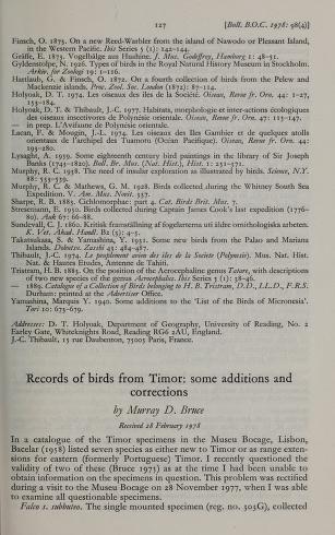 Published in Bulletin of The British Ornithologists' Club, in 1978, in volume 98, pages 127-128