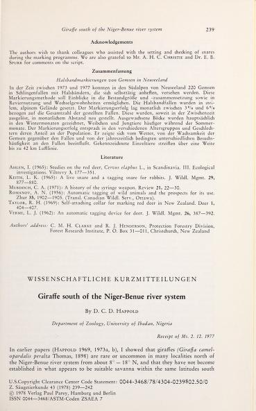 Published in Zeitschrift für Säugetierkunde, in 1977, in volume 43, pages 239-242
