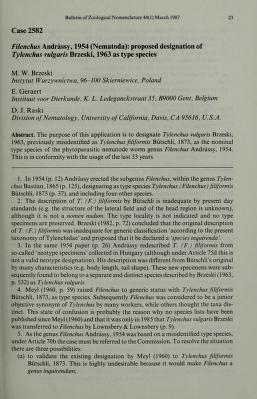 Published in Bulletin of Zoological Nomenclature, in 1987, in volume 44, pages 23-24
