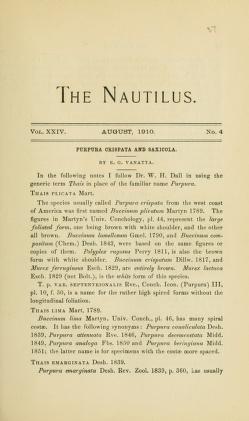 Published in Nautilis, in 1912, in volume 26, pages 16-22