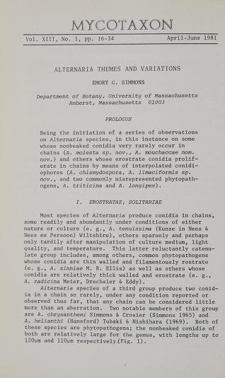 Published in Mycotaxon, in 1981, in volume 13, issue 1, pages 16-34