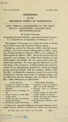 Published in Proceedings of The Biological Society of Washington, in 1962, in volume 75, pages 259-267