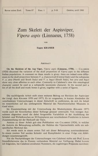 Published in Revue Suisse De Zoologie, in 1980, in volume 87, pages 3-16