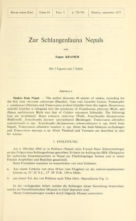 Published in Revue Suisse De Zoologie, in 1977, in volume 84, issue 3, pages 721-761