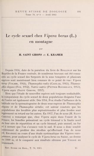 Published in Revue Suisse De Zoologie, in 1963, in volume 70, issue 1, pages 191-221