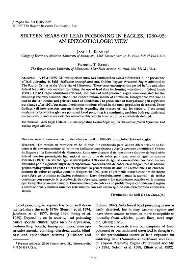 Published in Journal of Raptor Research, in 1997, in volume 31, issue 4, pages 327-332