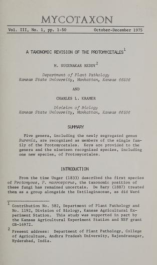 Published in Mycotaxon, in 1975, in volume 3, issue 1, pages 1-50