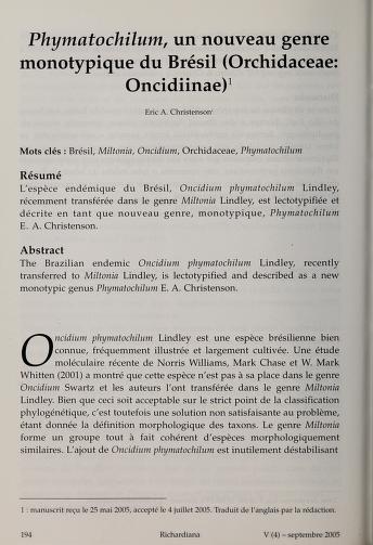 Published in Richardiana, in 2005, in volume 5, issue 4, pages 194-196