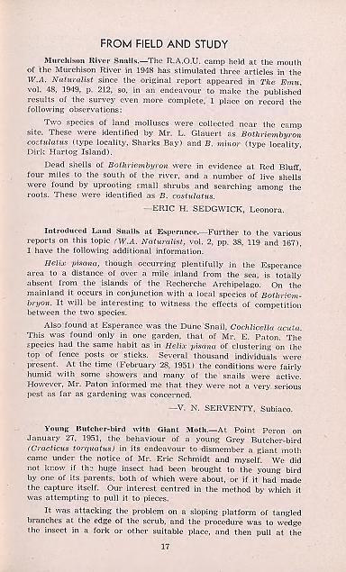 Published in Western Australian Naturalist, in 1951, in volume 3, issue 1, pages 17