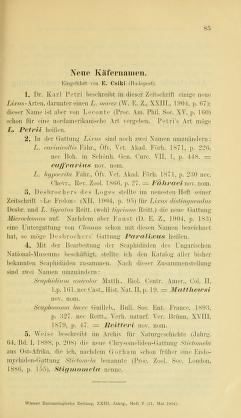 Published in Wiener Entomologische Zeitung, in 1904, in volume 23, pages 85