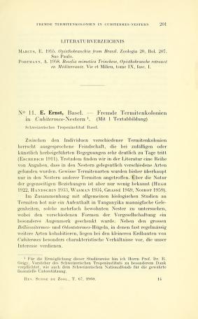 Published in Revue Suisse De Zoologie, in 1960, in volume 67, pages 201-206