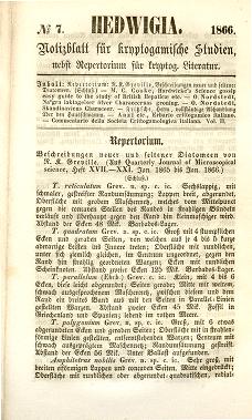 Published in Hedwigia, in 1865, in volume 4, pages 1-3