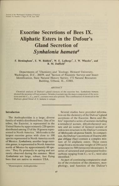 Published in Journal of The Washington Academy of Sciences, in 1984, in volume 74, pages 47-50
