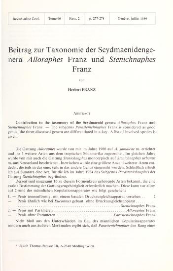 Published in Revue Suisse De Zoologie, in 1989, in volume 96, pages 277-278