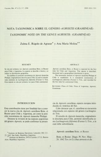 Published in Gayana Botanica, in 1990, in volume 47, pages 3-8