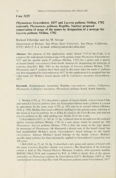 Published in Bulletin of Zoological Nomenclature, in 2003, in volume 60, issue 1, pages 38-41
