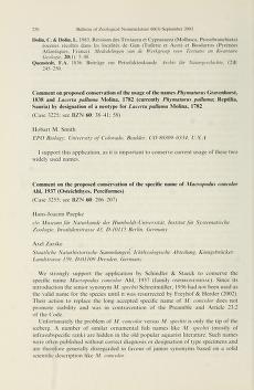 Published in Bulletin of Zoological Nomenclature, in 2003, in volume 60, issue 3, pages 220