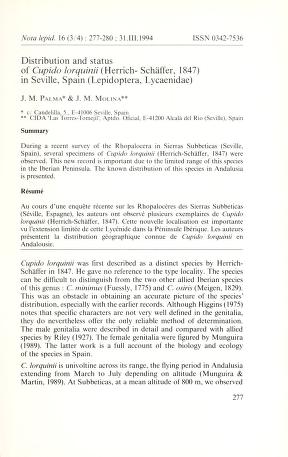 Published in Nota Lepidopterologica, in 1994, in volume 16, pages 277-280