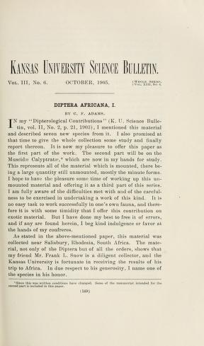 Published in Kansas University Science Bulletin, in 1905, in volume 3, issue 6, pages 149-208
