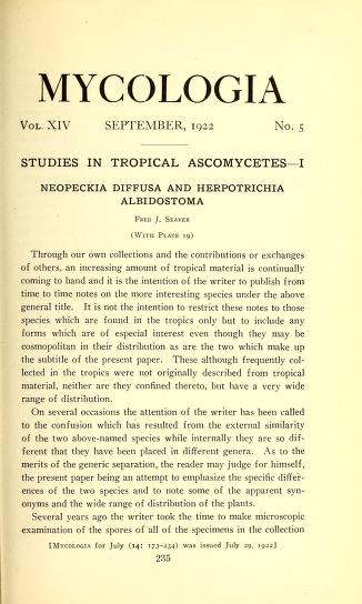 Published in Mycologia, in 1922, in volume 14, issue 5, pages 235-238