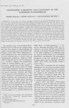 Published in The Wilson Bulletin, in 2000, in volume 112, issue 3, pages 337-346