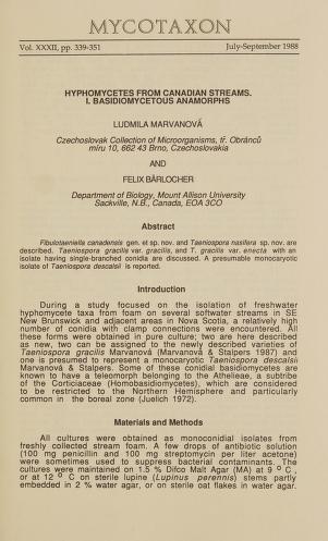 Published in Mycotaxon, in 1988, in volume 32, pages 339-351