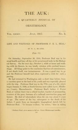Published in The Auk, in 1917, in volume 34, pages 243-264