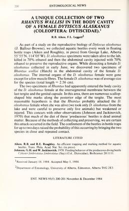 Published in Entomological News, in 1984, in volume 95, pages 200-201