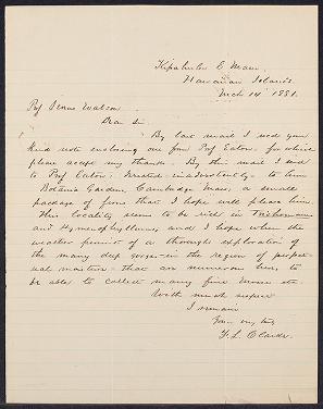Published in Asa Gray correspondence. Senders Ca-Cl, in 1881, pages 1