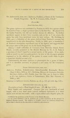 Published in Journal of the Linnean Society of London, Zoology, in 1913, in volume 32, issue 216, pages 219-223