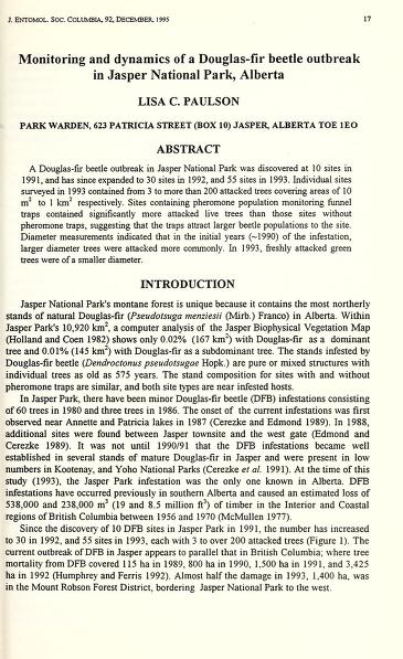 Published in Journal of The Entomological Society of British Columbia, in 1995, in volume 92, pages 17-24