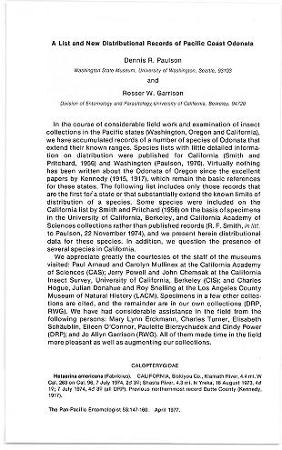Published in Pan-Pacific Entomologist, in 1977, in volume 53, issue 2, pages 147-160,illust.