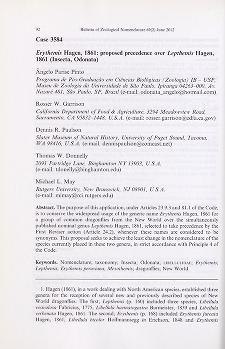 Published in The Bulletin of Zoological Nomenclature, in 2012, in volume 69, issue 2, pages 92-100