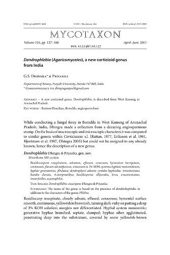 Published in Mycotaxon, in 2011, in volume 116, issue 1, pages 157-160