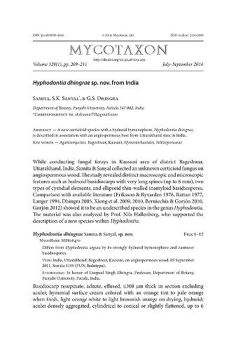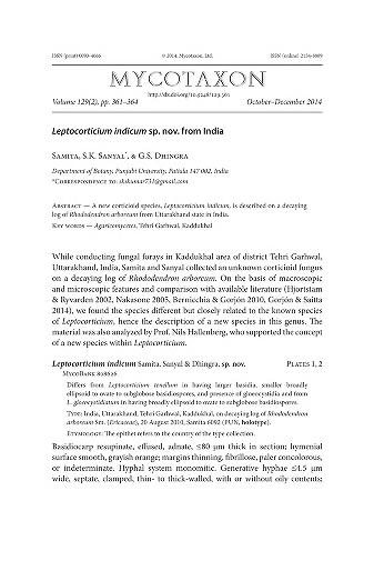 Published in Mycotaxon, in 2014, in volume 129, issue 1, pages 209-211