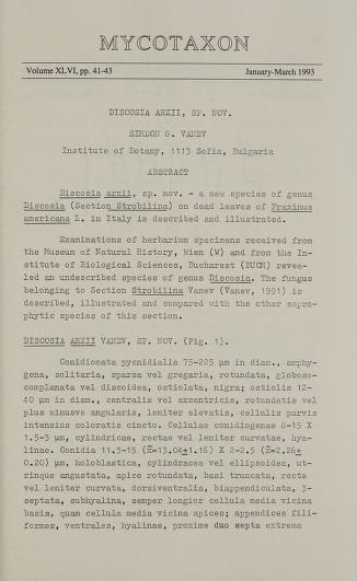 Published in Mycotaxon, in 1993, in volume 46, pages 41-43