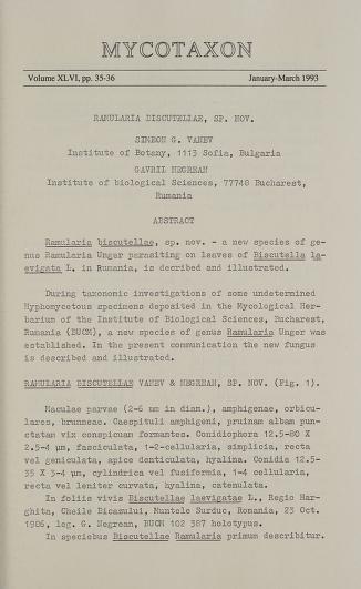 Published in Mycotaxon, in 1993, in volume 46, pages 35-36