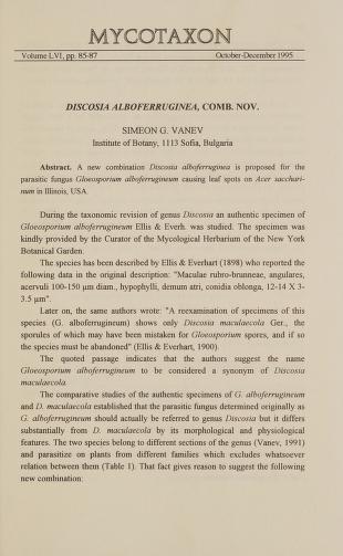 Published in Mycotaxon, in 1995, in volume 56, pages 85-87