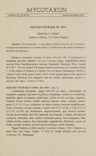 Published in Mycotaxon, in 1995, in volume 56, pages 81-83