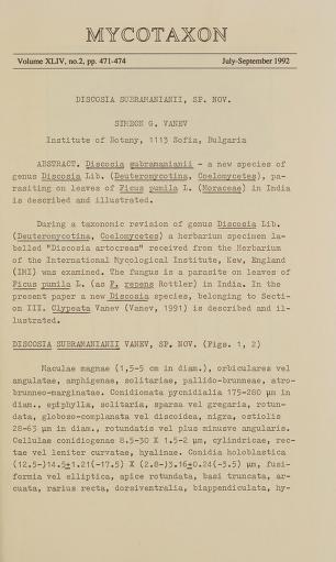 Published in Mycotaxon, in 1992, in volume 44, issue 2, pages 471-474