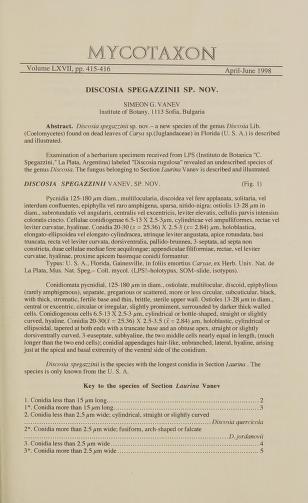 Published in Mycotaxon, in 1998, in volume 67, pages 415-416