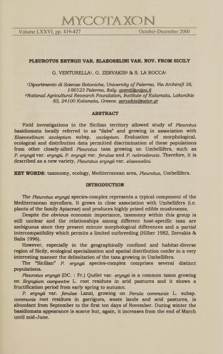 Published in Mycotaxon, in 2000, in volume 76, pages 419-427