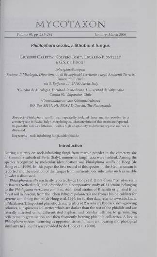 Published in Mycotaxon, in 2006, in volume 95, pages 281-284