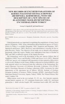 Published in Entomological News, in 2003, in volume 114, issue 4, pages 187-191