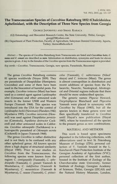 Published in Journal of Hymenoptera Research, in 2010, in volume 19, issue 1, pages 121-127